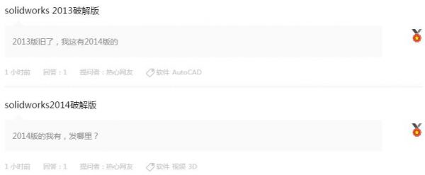 看看我在百度知道关于“solidworks”的提问全军覆没。